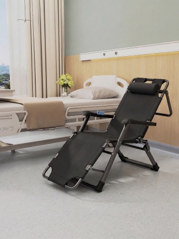 明亮的居家卧室,主色调为柔和的浅蓝色墙壁与米白色天花板,大窗户搭配米色与浅绿色渐变窗帘,窗外是城市远景,室内光线充足,自然光从左侧窗户洒入形成柔和阴影,中央摆放一张米色多功能病床,铺着洁白床单,床头配备医疗设备,病床旁有两张浅蓝色扶手椅和一张圆形小茶几,茶几上放置白色花瓶插着白色与淡粉色鲜花,地面为浅灰色防滑地板,整体氛围宁静、舒适、整洁,具有现代简约风格,细节质感清晰,光影过渡自然。