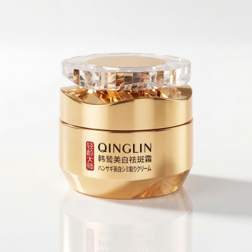 鎏金液态风与3D重拟物设计结合,蓝金交织的未来感护肤瓶,奢华科技感十足,极繁主义光影演绎高端质感。