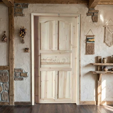 现代感木雕风门设计,融合3D立体与重拟物质感,简约主义美学呈现,温暖木质纹理搭配纯白圆形门把手,营造静谧空间氛围。