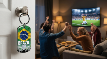 3D风微缩艺术,拼贴现实与虚拟,手握足球指尖陀螺呼应电视赛场,全家欢聚共庆世界杯,温馨舒适中尽显趣味感。