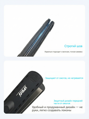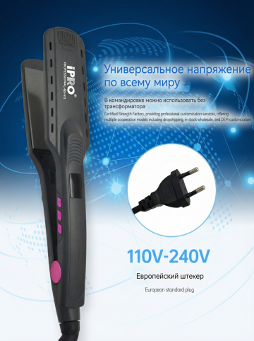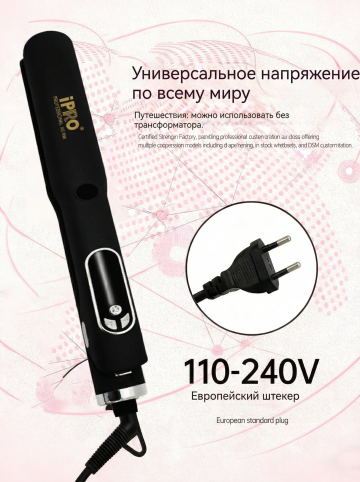 将背景替换为温馨家庭梳妆台背景,保持图中直发器产品、人物姿势和产品构图不变,保留所有俄文标注内容,将俄文标注字体颜色修改为黑色