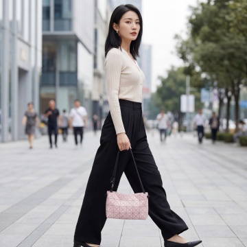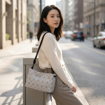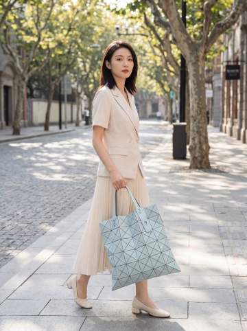 柔和光影下的都市街拍,黄裙女子手提购物袋,优雅行走。杂志风构图,面料质感细腻,清新时尚,尽显春日浪漫。