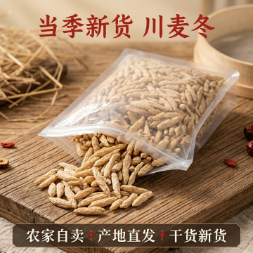 [主图 6 服务与转化] 麦盏手工刀削面真空整包装展示主图,品牌logo"麦盏"印在包装上方,真空包装清晰透出内部新鲜刀削面片,包装摆放在原木背景上,旁边摆放小麦穗点缀。画面底部横向排列服务亮点标签:"手工制作"、"新鲜直发"、"坏单包赔",标签为浅棕色半透明圆角矩形,白色文字。整体风格保持传统质朴,暖调自然光,统一色调。顶部标题 "正宗山西风味 麦盏手工刀削",深棕色宋体,文字悬浮不遮挡包装主体。