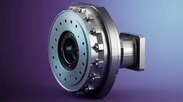 科技感十足的3D工业机械装置,金属质感强烈,重拟物设计展现未来感,冷色调背景凸显精密与力量。