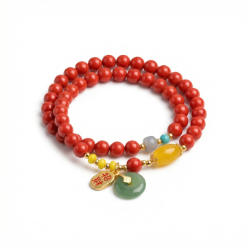 柔和光影中,粉晶手串静卧于木雕纹理之上,搭配干枝与石刻质感,营造出质朴文艺的中式静谧之美,传递舒适优雅的自然意境。
