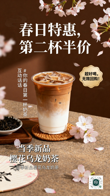 在活动时间上方添加一行门店地址文字,地址填写为"樱花大道128号 春日花园店",保持原海报清新治愈风格、蔷薇色搭配春日青配色和樱花元素不变,排版简约,高清商用