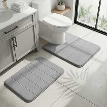 更换产品背景,保持主体灰色浴室地垫U型套装的物理结构、产品形态和颜色完全不变。使用干净亮堂的纯白色浴室瓷砖背景,极致简洁明亮,最大化突出产品主体,整体为明亮的商业摄影风格,均匀布光,清晰展示产品轮廓和材质,适合亚马逊主图展示。保持产品主体不变,仅替换干净亮堂背景,禁止产品变形。负向提示词:亚洲面孔、韩流风格、苍白皮肤、柔焦模糊、背景虚化过度、平光、动漫风、可爱道具、多余的盖子、缺失的部件、悬浮的物体、变形的手柄、摄影灯、柔光箱、三脚架、水印、文字、昏暗光线、死黑阴影、畸变透视、比例失调