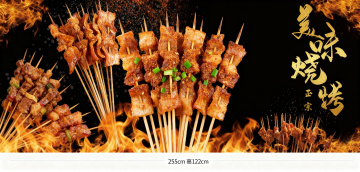 夜市烟火中,烤串跃动,辣椒粉如星雨飞溅,中式街景与美食摄影风交融,粒子动态增强冲击感,噪点质感添实景氛围,喜庆红光映照舌尖盛宴。