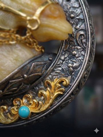 鎏金浮雕工艺,镶嵌红宝石,融合欧洲宫廷艺术与金属风,尽显奢华古典优雅之美。