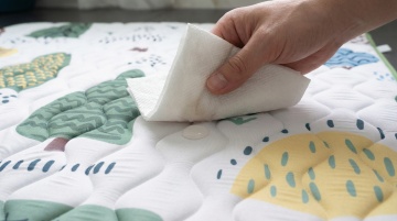 实景感与舒适感交织,柔和光线下的单色床品展现质朴面料纹理,手部细节传递温暖触感,简约设计风营造宁静家居氛围。