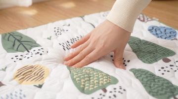 实景感与舒适感交织,柔和光线下的单色床品展现质朴面料纹理,手部细节传递温暖触感,简约设计风营造宁静家居氛围。