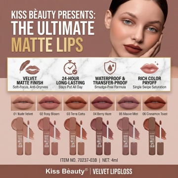 柔和粉调背景,清透玻璃瓶身搭配液态唇釉涂抹痕,轻拟物风呈现甜美时尚感,彰显现代美妆的精致美学。