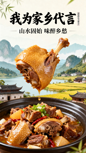 [主图 4 烹饪场景体验] 主图主题:黑肉老公鸡烹饪成品展示;氛围/风格:温馨食欲感,诱人成品氛围;画面元素:炖煮好的黑肉公鸡盛放在砂锅中,热气腾腾,汤汁浓郁,肉块饱满,放在深色木质餐桌上,搭配少许葱姜香料点缀,暖光氛围突出诱人食欲;配色色系:主色调:砂锅深灰,肉块深褐,汤汁浅黄;辅助色:木桌棕;视角构图:平视拍摄,主体砂锅居中占比约60%;文字版式:主标题“肉嫩鲜香 口感醇厚”加粗无衬线深棕色大字,悬浮画面顶部,底部小字标注“做法多样 炖炒皆宜”浅棕色,文字不遮挡主体;比例分辨率:3:4比例,2k分辨率