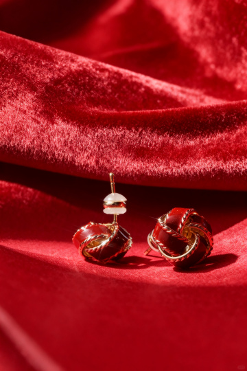 盛夏珠宝特写,温润太湖石上放置精致产品珍珠耳环