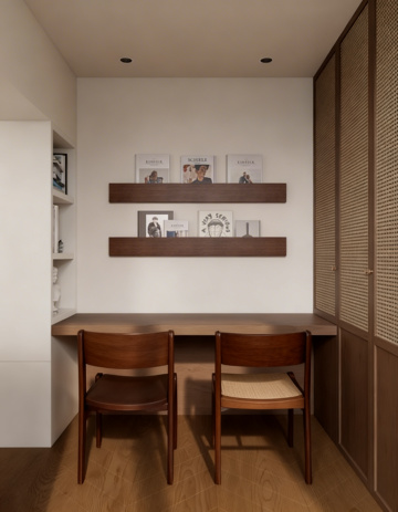 现代感与木雕风融合,光影交错间展现简约主义的舒适与商务质感,性冷淡风中透出质朴温暖。