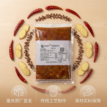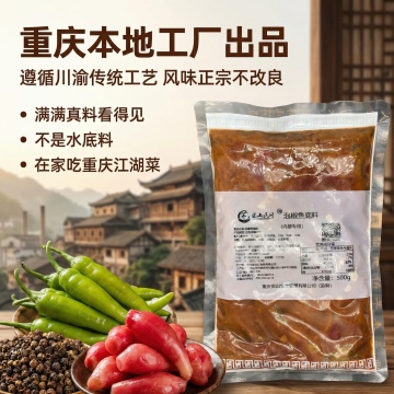 [主图 6 服务与转化] 麦盏重庆小面套装包装展示主图,真空包装的碱水鲜面搭配独立调料包,整齐摆放在原木背景上,品牌logo"麦盏"印在包装正面,旁边点缀干辣椒和花椒。画面底部横向排列服务亮点标签:"配方齐全"、"新鲜直发"、"坏单包赔",标签为红棕色半透明圆角矩形,白色文字。整体风格保持川味烟火气,暖调自然光,统一色调。顶部标题 "地道重庆小面 在家轻松做",深棕色宋体,文字悬浮不遮挡包装主体。