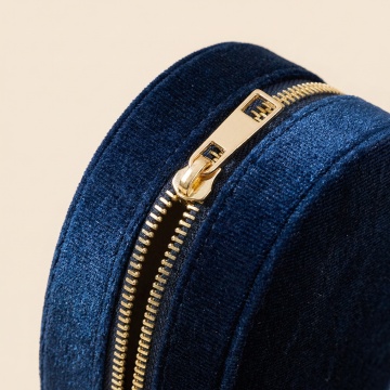 参考提供的图片,生成椭圆形韩国绒首饰收纳盒电商详情页,展示收纳盒内部隔层结构和放置好戒指耳环首饰的效果,体现分类收纳防止首饰碰撞的特点,简洁背景,高清商业摄影