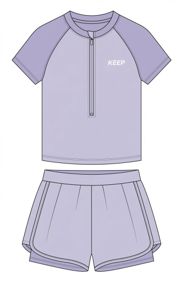 移除背景和人台,完整保留这套服装的所有细节,不改变款式结构,包括上衣的圆领珍珠包边、泡泡短袖收腰下摆设计,以及阔腿长裤的纹理版型,将服装转换为线条加粗的标准PS工业黑白线稿图