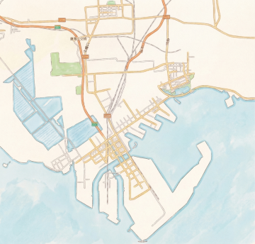 扁平化风格地图设计,柔和圆润的线条勾勒出不同区域轮廓,采用清新的蓝色、绿色和橙色作为主色调,地图上包含湖泊、森林和地标等元素,橙色定位标记点缀其中,整体视觉简洁明快,具有现代感和装饰性。