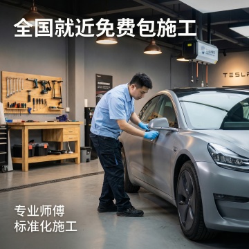 [主图 5 服务承诺] 主图主题:贴心服务承诺促进下单,氛围风格:专业可信,安心保障感,画面元素:理想汽车改色完成后交车场景,技师和车主微笑交车,背景是干净明亮的改装门店,画面底部设置横向半透明悬浮服务条,文字版式:主标题 "无忧服务 贴心保障",底部横向排列服务亮点:"全国就近免费包安装" "贴坏包赔" "质保三年 免费补膜",每个卖点搭配简约图标,字体为无衬线黑体,白色,采用半透明弥散投影,符合服务承诺排版规范,构图平衡不遮挡主体,2k分辨率