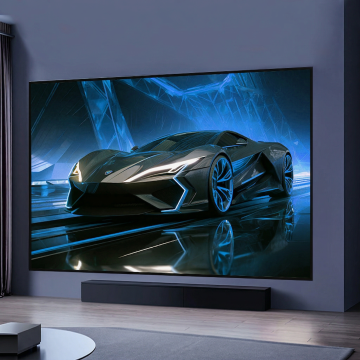 将图2的电视机放进图1的蓝色科技网格场景当中,保持电视机和图2一致的放置角度,电视机稳定放置在场景地面上,不要悬空飞起。保证电视机产品物理细节绝对不变,完全保留原场景的蓝色网格地形和星空背景内容。精准匹配原场景透视角度,实现空间尺度物理融合。重置电视机光影,增强光照一致性,赋予自然光影及真实接触阴影。产品色温亮度与环境完全协调,消除视觉接缝,画面自然真实,保持原背景深蓝色科技感色调,强化商业摄影质感。保持1:1画面比例,4K分辨率。