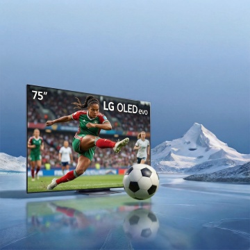 一个现代简约风格的客厅场景,阳光透过巨大的落地窗洒入,木地板泛着温暖的光泽,浅灰色的布艺单人沙发搭配黑色皮质脚凳,原木色的电视柜上放置着一台超薄智能电视,电视屏幕上显示着一个宁静的湖泊日落景色,湖面上有一艘小船,远处是连绵的山峦和橙红色的晚霞,天空中飘着几朵云彩,电视下方的应用图标清晰可见,电视柜上摆放着两个简约的黑色陶瓷花瓶,窗外可以看到城市的远景和山脉轮廓,整体氛围明亮、通透、舒适,具有高度的真实感和细腻的光影表现,光线从画面右侧窗户射入,在地面和家具上形成柔和的阴影和高光,色彩以原木色、灰色、白色为主调,搭配屏幕上日落的暖色调,构成和谐统一的现代家居美感。