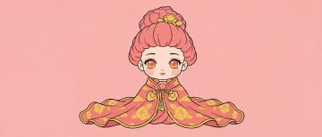 可爱卡通插画风,拟人化古装少女,生动表情展现传统节日魅力。