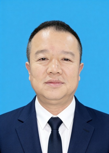 保留人物脸型、发型、年龄特征生成标准职场形象照,50MM焦段,F/4光圈(F/2.8-F/4区间),相机与人物距离3米,横向16:9比例(左右预留环境空间),人物占画面60%,入镜头部至膝盖上方5CM,平视视角,人物居中构图,头肩比例协调,身穿深墨蓝色西装,内搭白色衬衫,精致且高级的深蓝色斜向微微渐隐光泽感极细条纹商务感领带,下装黑色西裤搭配黑色皮带;正面抱胸姿态,肢体舒展的站立姿态,自信从容;主