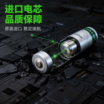 [主图 3 细节展示] 主图主题:BR-C电池接口细节特写;氛围风格:微距质感,工业科技风;画面元素:放大展示电池的黑色插头接口细节,保持接口外观与原图一致,使用放大镜特效突出接口金属触点的精致工艺,背景虚化处理,突出细节;配色色系:主色调深灰,辅助色黑色接口、产品黄色;视角构图:特写微距视角;文字版式:左上角主标题 "精工细节 耐用可靠" 黑色黑体,右侧文字标注 "防松接口 稳定导电" 灰色小字,文字不遮挡核心细节区域;比例分辨率:2k分辨率