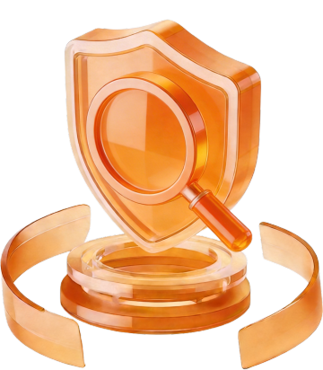 科技感十足的3D玻璃风盾牌图标,融合未来感与清透质感,光影流动展现体积感,轻拟物设计传递安全守护理念。