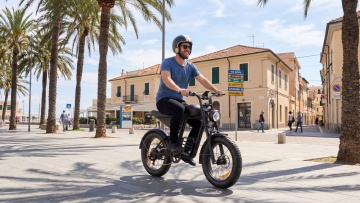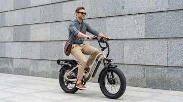 现代感与科技感融合的电动自行车,采用双色设计风与重拟物风格,金属质感强烈,实景自然背景衬托工业美学,展现未来出行新体验。