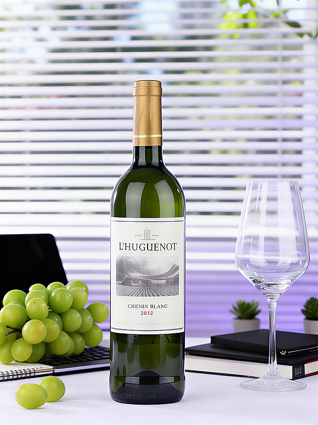 [主图4 陈酿工艺] 爱唯侬堡卡洛白葡萄酒,保持酒瓶外观和原图一致,画面展示开瓶后倒入酒杯的场景,杯中葡萄酒淡金黄透亮,还原夏日果园清新果香的氛围,酒瓶和酒杯共同放置在浅色木质桌面,背景是柔和的日光光斑。画面左上角标注“全程控温不锈钢罐陈酿”,右下角标注“锁住清新果香”,文字简洁不遮挡产品主体,光影通透自然,整体风格和前三张主图保持统一,符合京东平台规范。详情