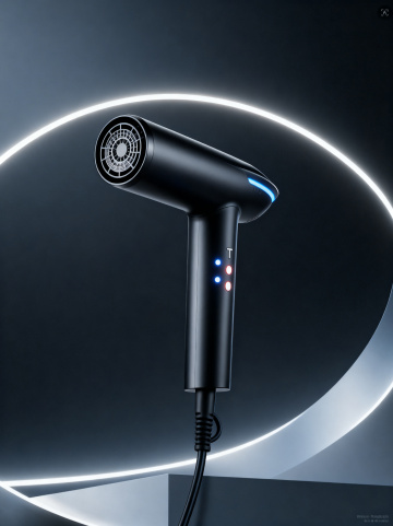 科技感与未来感交织,3D渲染呈现虚拟现实中的粒子风沙舞动,极繁主义光影营造梦幻氛围,沙漠场景中双色手持设备彰显设计美学。
