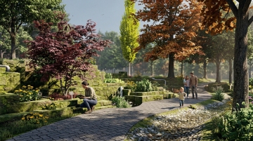 3D风虚拟自然景观,融合水彩与油画质感,呈现清新唯美的春日花园,柳树成荫,花影婆娑,营造舒适文艺的诗意空间。