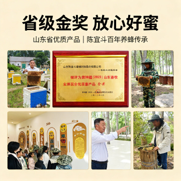 - **视觉**:金奖奖牌特写+品牌历史墙/四代养蜂老照片拼接,强化“老字号+权威认证”信任感。