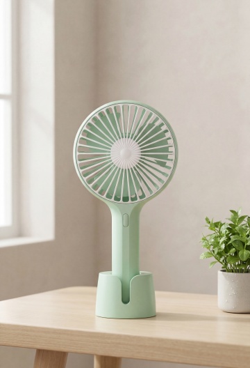 轻拟物风与金属质感结合,简约主义设计,展现现代科技感。实景拍摄传递清爽舒适体验,单色配色强化视觉焦点,突出便携风扇的实用与美学。