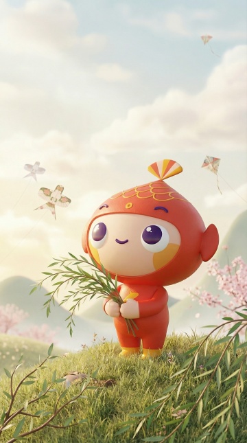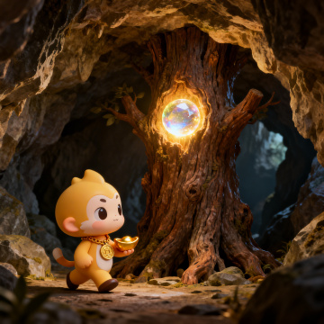 软3D国潮风,拟人化锦鲤跃动于鎏金溪流,毛发生长质感的祥云龙与挂满铜钱的绒毛树,营造喜庆梦幻的春节氛围。