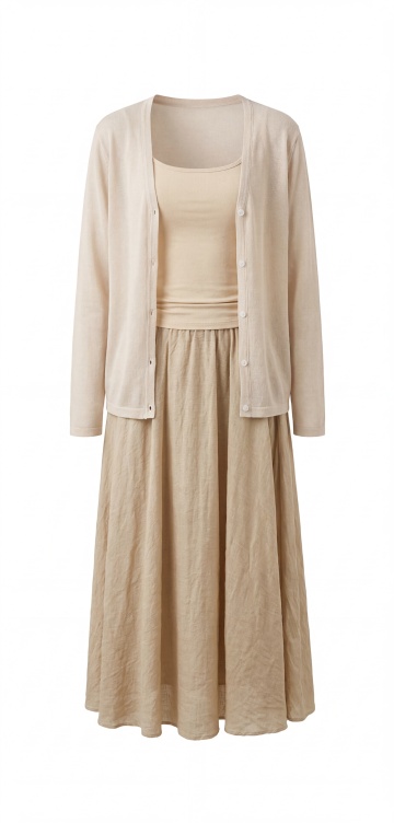 柔和米色系套装,简约廓形搭配天然面料质感,呈现质朴舒适与性冷淡风的静谧美学。