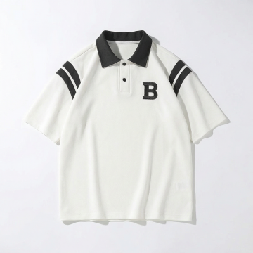 现代感黑白双色Polo衫,清爽舒适面料风设计,简约字母B点缀,夏日时尚必备。
