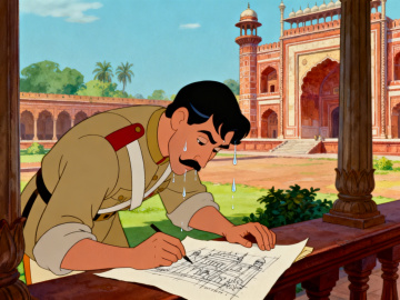 仅保留原图片中的远景印度古建筑和天空背景,删除人物和前景景物,保持动画风格不变,保留完整内容