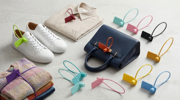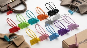 六个不同配色、不同样式、不同材质的价格标签造型,每个标签具有独特的轮廓形状,运用鲜明且多样化的色彩方案,展现如金属、塑料、纸质、木质、布料、皮革等各异的材质质感,所有标签以上下两行整齐对齐排列于简洁的浅色背景之上,整体画面干净利落,不包含任何文字元素,呈现出清晰、直观且富有设计感的视觉效果。