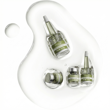 清新玻璃瓶置于虚拟自然水景中,花影轻舞,尽显清爽与清透感。