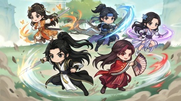 移除原图片的自然背景,替换为纯白色背景,将图中的五个Q版古风角色分离出来,每个人物单独保留,保持每个人物原本的战斗动作、服饰和外貌特征不变,不要添加额外元素