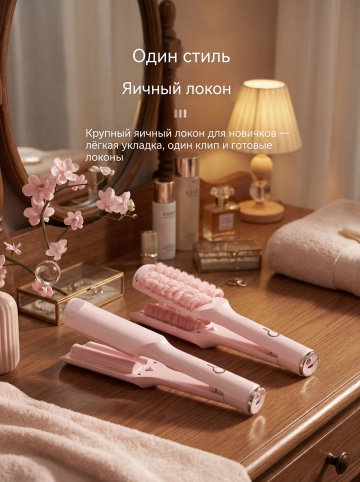 将原图片的背景替换为温馨家庭梳妆台背景;保持图片构图、所有俄文标注和描述内容不变,保持产品姿势和产品构图不变,图片尺寸比例设置为3:4;融合自然,光影协调,效果真实