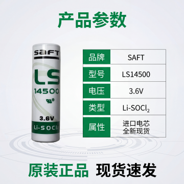 [主图 2 核心卖点] 主图主题:SAFT LS17500锂电池核心卖点展示;氛围风格:专业3C数码工业风,冷调光影,高级质感,和第一张主图风格统一;画面元素:锂电池产品居中,用极细银色引线标注产品核心部位,每个引线末端带光点定位,背景为浅灰科技纹理,整体简洁专业,产品外观和原图保持100%一致;配色色系:主色调浅灰银,辅助色产品白绿;视角构图:正前方平视,产品主体突出;文字版式:顶部大标题"原装正品 核心参数",每个引线末端标注对应卖点文字"原装进口电芯"、"3.6V稳定输出"、"长寿命续航",字体无衬线,字号对比清晰,文字不遮挡主体;