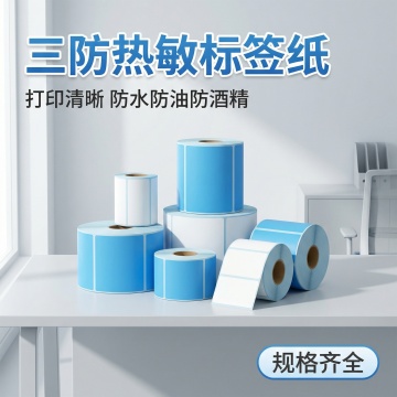 [主图 2 核心卖点] 主图主题:热敏标签纸打印清晰卖点展示 氛围风格:干净专业,功能实证,简洁突出。画面元素:特写展示打印好的热敏标签,标签上文字线条清晰锐利,旁边放置整卷标签纸,放置在干净浅蓝背景上,无多余装饰。整体画面干净明亮,突出打印效果。产品外观和原图保持一致。 配色色系:浅蓝背景为主,白色标签配深色打印字迹,对比强烈。 视角构图:特写平视,主体突出。 文字版式:左侧垂直排列三个核心卖点,每个卖点配简约勾选图标,分别为“打印清晰 字迹锐利”、“防水防油 耐酒精擦拭”、“多种规格 支持定制”,使用深灰色无衬线字体,文字不遮挡产品主体。 比例分辨率:2k分辨率