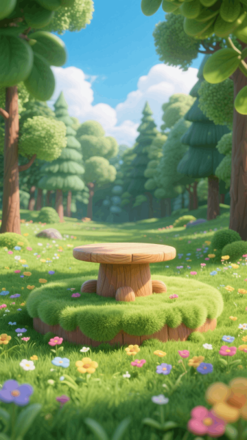 梦幻甜美元素融合软3D风格,毛发生长风树木与粉嫩云朵营造童话森林,虚拟自然中流淌着清澈溪流,传递春日治愈感。