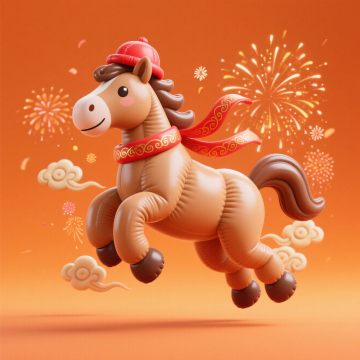 软3D风格卡通马,身挂红灯笼,踏祥云奔跑,国潮风喜庆可爱,节日氛围浓厚。