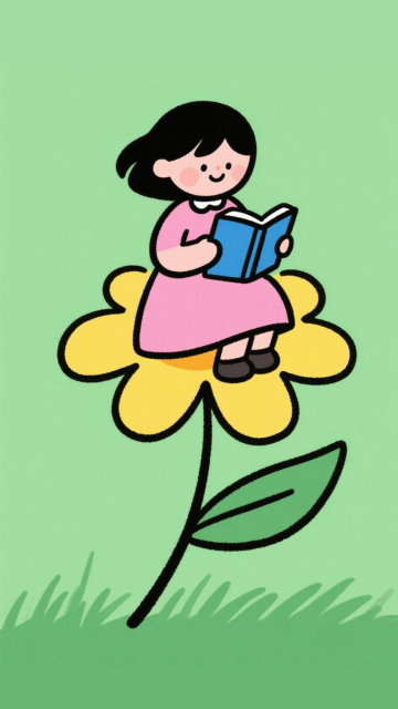 水彩风插画,女孩藏于绿叶间,星形发饰点缀,清新梦幻,手账风细腻笔触,柔和色调营造春日氛围。