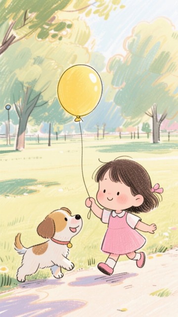 清新插画风,卡通人物手牵手,享受零食时光,传递童真与欢乐。